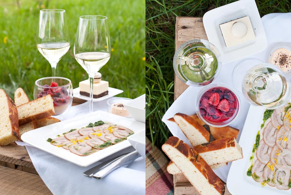 eine reichlich gefüllte Picknickkiste mit allerlei hausgemachten